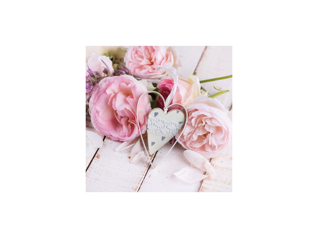 Papírové dekorativní ubrousky 33 x 33 cm 20 ks - Pivoňky se srdíčkem